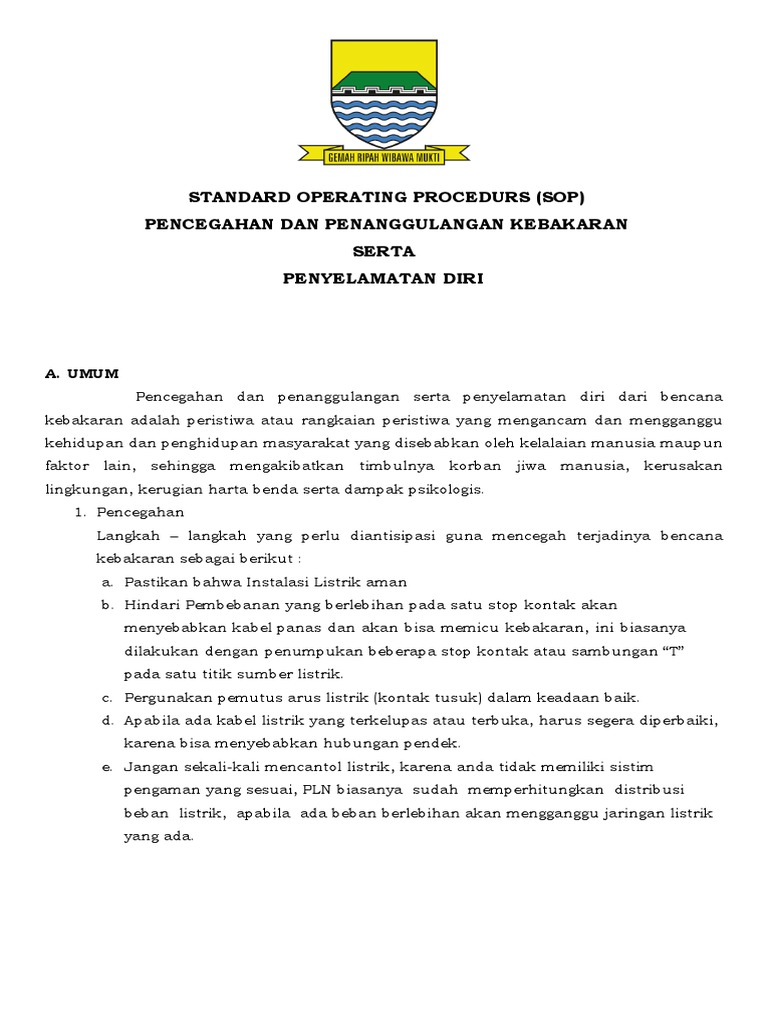 Pedoman pengoperasian dan pemeliharaan ipal 1. Tanggal terbit sop halaman tanda tangan : 00 direktorat fasilitas dan properti sop perawatan instalasi listrik tujuan sebagai pedoman perawatan inatalasi listrik bagi seluruh pengelola unit kerja di lingkungan ipb. Pemeliharaan dan perawatan instalasi listrik dan penerangan perlu memperhatikan penghematan energi listrik. Sop jika terjadikebakaran , ketersediaan apar, pelatihan penggunaan apar , pelatihan jika terjadi kebakaran