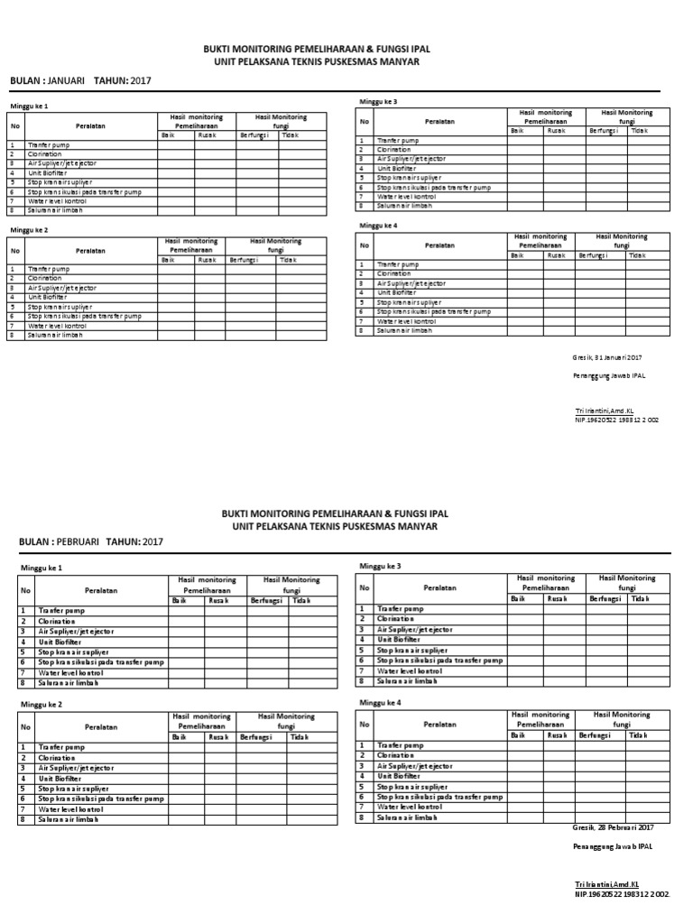 2.sop pemeliharaan & pemantauan instalasi listrik, air, ventilasi, gas o2, gas l pg & sistem lain, bukti pemantauan & tindak lanjut 3. 8.5.1 sop pemeliharaan dan pemantauan instalasi listrik, air, ventilasi gas dan sistem lainnya.rtf Pemeliharaan panel distribusi tegangan menengah (tm) dan tegangan rendah (tr). Pemeliharaan panel distribusi tegangan menengah (tm) dan tegangan rendah (tr). 8.5.1.2 sop pemeliharaan dan pemantauan instalasi listrik, air, ventilasi, gas dan sistem lain Raya bojonegoro cepu 1688 ds panjunan kec kalitidu kab bojonegoro 1. 1 standar kompetensi asesor bidang instalasi pemanfaatan tenaga listrik sub bidang pemeliharaan kode unit : Tutik mahanani ucd, mmrs ) 1. Sop pemeliharaan dan pemantauan instalasi listrik, air, ventilasi dll.pdf: Sop pemantauan berkala pelaksanaan prosedur pemeliharaan dan sterilisasi instrumen.docx: Selain itu agar gangguan serta kerusakan mudah diketahui, dicegah atau diperkecil. Sop pemeliharaan dan pemantauan instalasi listrik, air, ventilasi, dan gas no. Isntalasi listrik, air, ventilasi dan gas no.